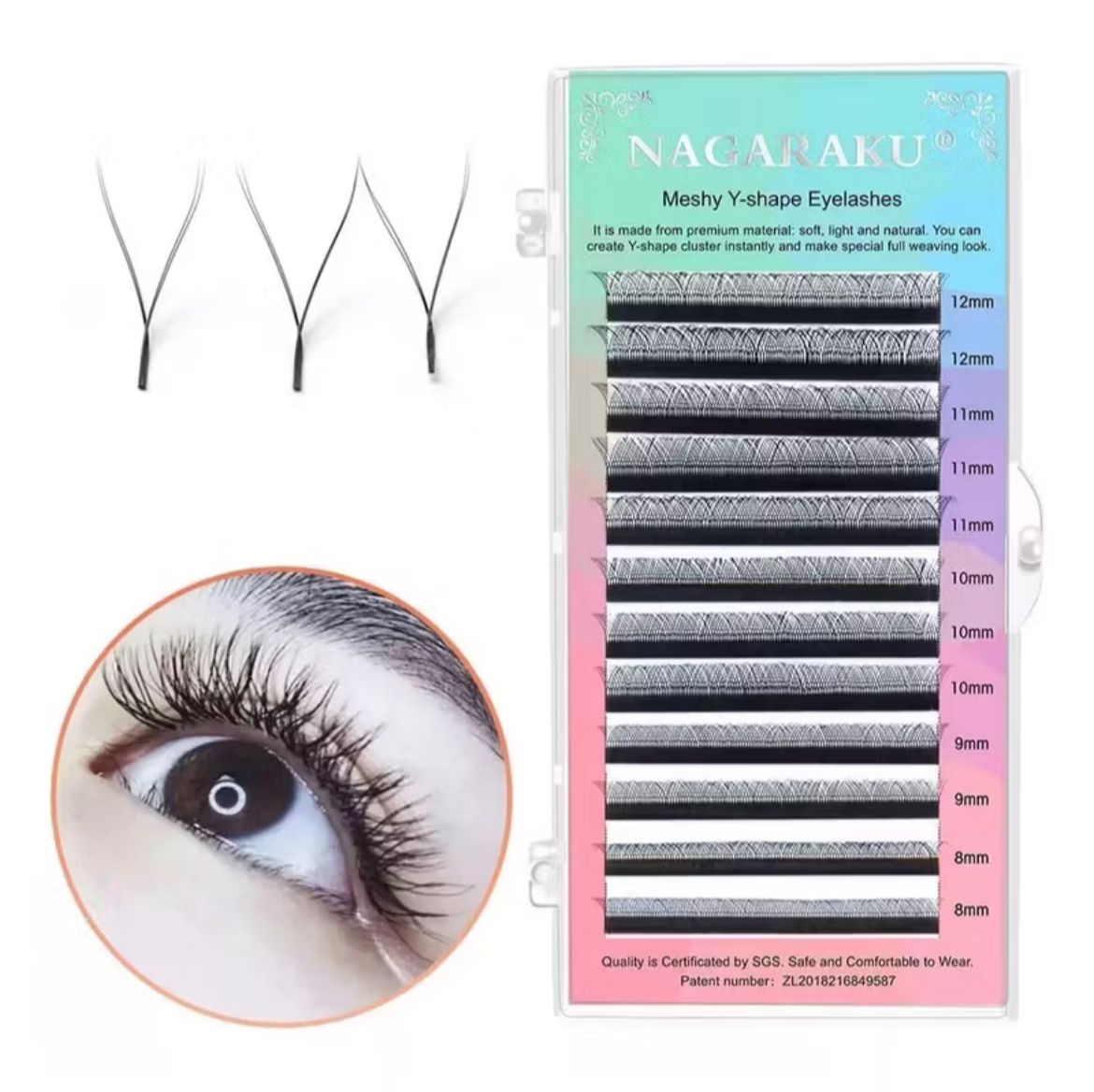 Os Cílios em Y da Nagaraku, são fabricados com um material de altíssima qualidade chamado fibra nobre de PBT e produzidos com alta tecnologia.