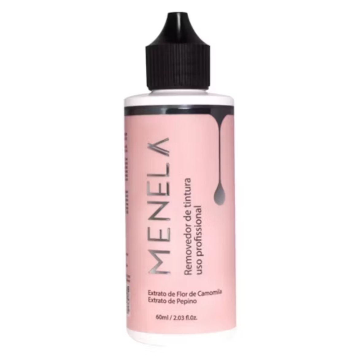1º Umedeça um algodão ou cotonete com o Removedor de Tintura Menela e passe suavemente sobre a região onde deseja remover a tintura.